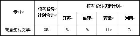 我校2018年戏剧影视文学专业拟在湖南、江苏、福建、安徽、河南等省份招生。校考省份拟定计划见下表,湖南等承认省统考成绩省份招生计划另行公布,具体招生计划详见各省(区、市)2018年招生计划来源表。